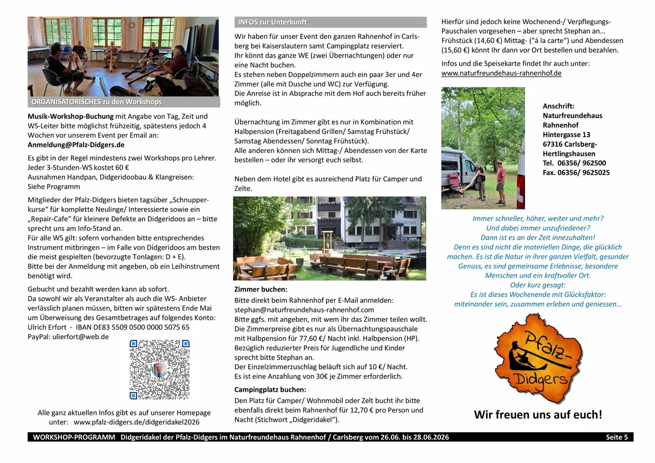 Alle weiteren Informationen, wie Buchungsmöglichkeiten für Workshops und Unterkunft findet ihr hier am Ende des Programms